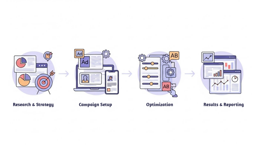 Slow performance kills results, so we move fast—without losing control. From quick campaign launches to rapid A/B testing and daily optimization, we help you see better clicks, better leads, and better ROI in less time.